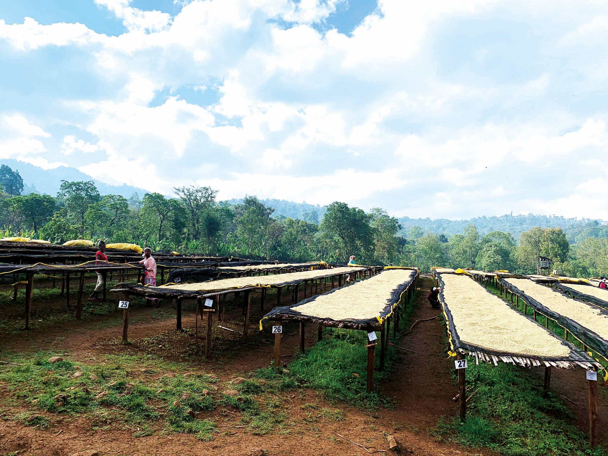 타베 부르카 워싱 스테이션은 현재 약 300명의 우라가 지역 소농으로부터 커피 체리를 수집하고 있습니다. 각 농부는 평균 3헥타르 규모의 농지를 소유하고 있으며, 체리는 정성스럽게 선별 수확된 후 워싱 스테이션에 전달됩니다. 수확된 체리는 먼저 물에 띄워 플로팅 과정을 거쳐 저밀도 체리를 제거하고, 이후 눈으로 재차 확인하여 손상되었거나 익지 않았거나 과숙한 체리를 골라냅니다.
