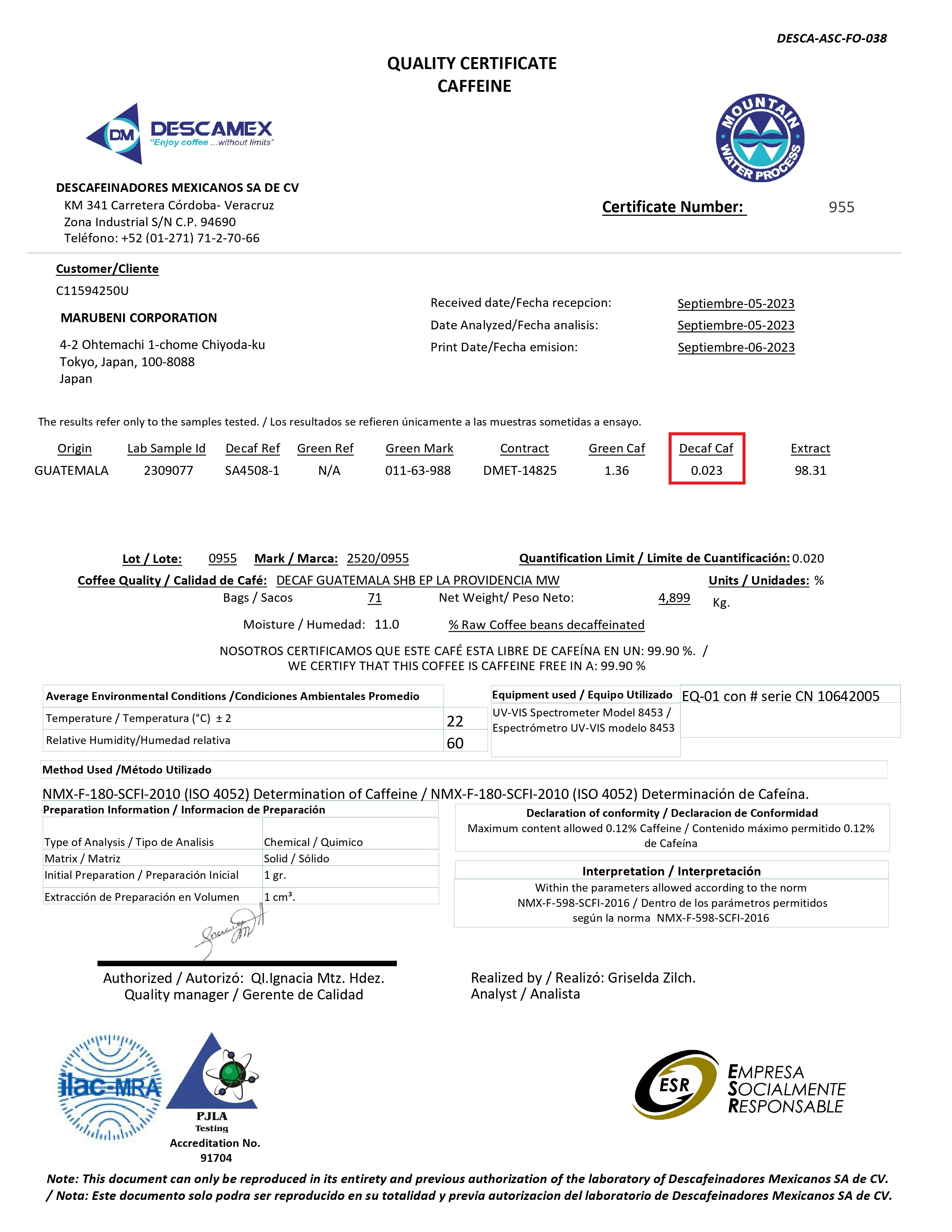 GUATEMALA SHB HUEHUETENANGO DECAFFEINATED(MOUNTAIN WATER)