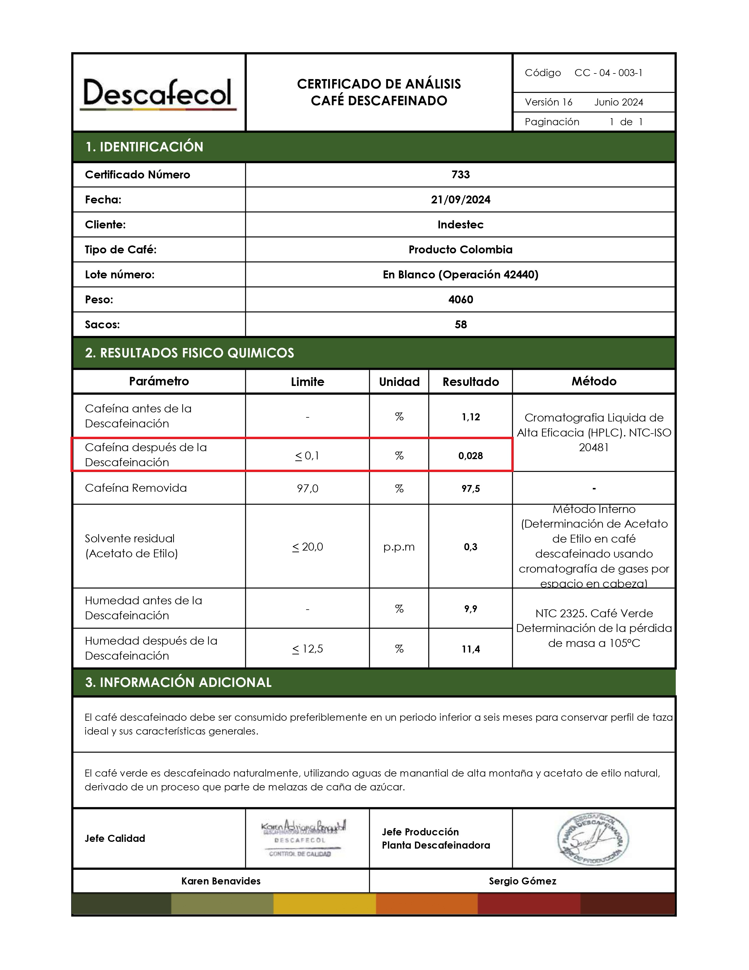COLOMBIA CAUCA DECAFFEINATED(ETHYL ACETATE)